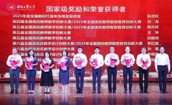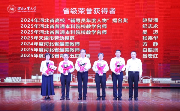 在“兴工报国・灯塔领航”篇章,表彰聚焦省级以上荣誉和奖励。校领导李子彪、马国伟、贺立军分别为“第五届河北省高校教师教学创新大赛”、省级荣誉获奖教师代表、国家级教学竞赛获奖教师代表颁发鲜花,祝贺他们在人才培养、科学研究、社会服务等方面取得优异成绩。