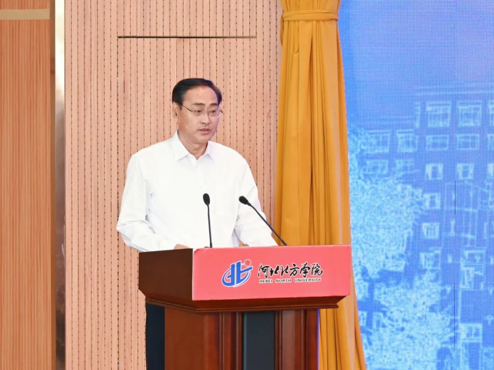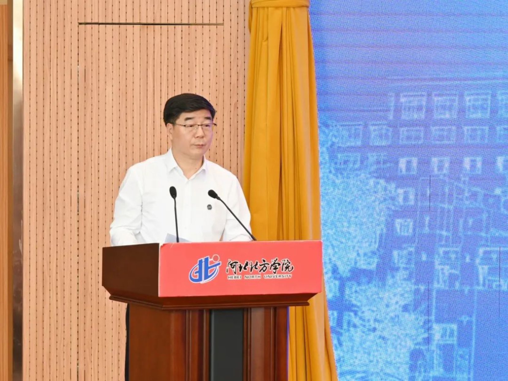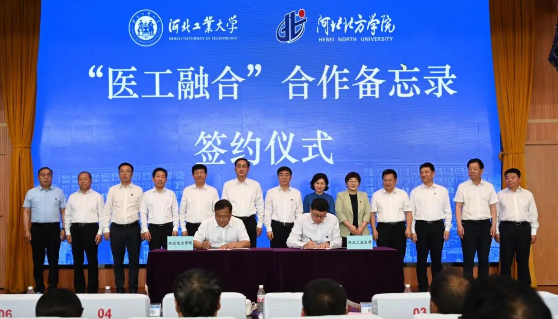 张家口市副市长闫利艳为张家口医工交叉研究院院长杨磊同志颁发了聘书、市卫生健康委、市科技局主要负责同志及两校相关部门、北方学院师生代表200余人参加会议。