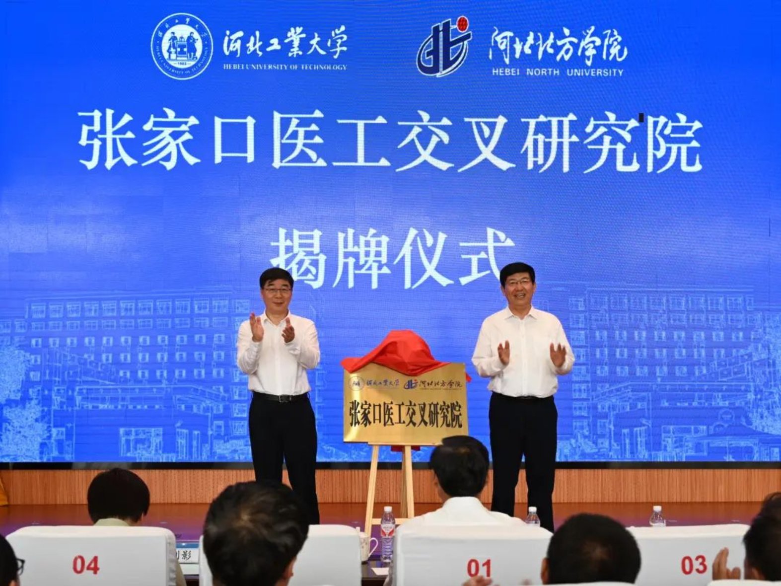 韩旭与牛春雨共同为张家口医工交叉研究院揭牌。