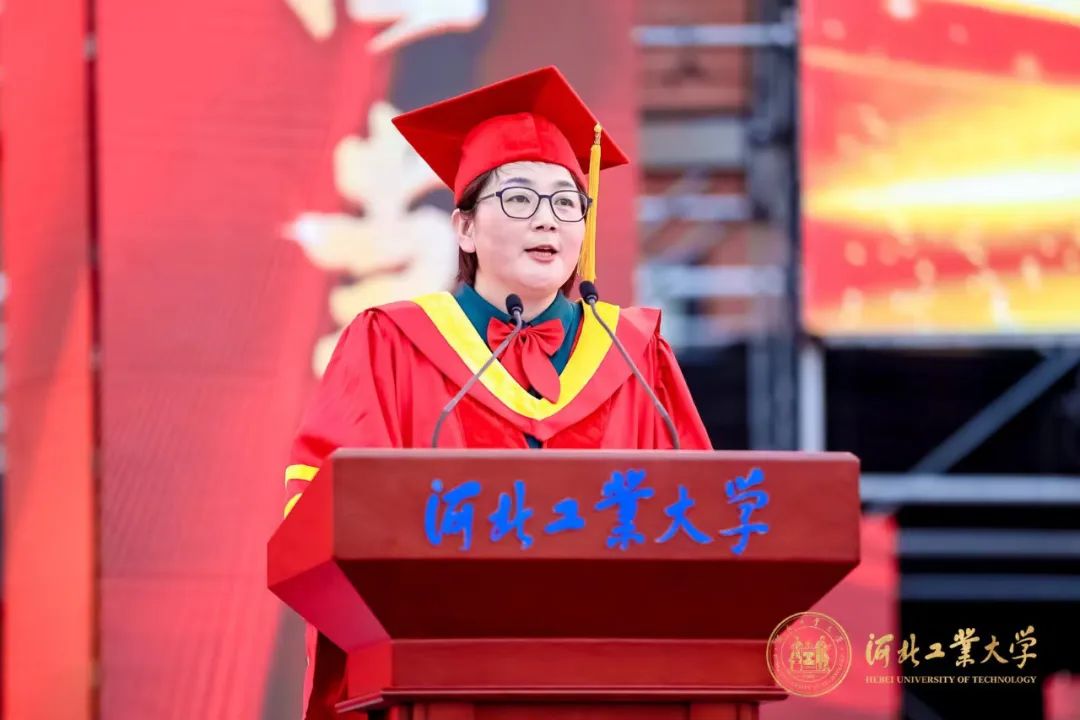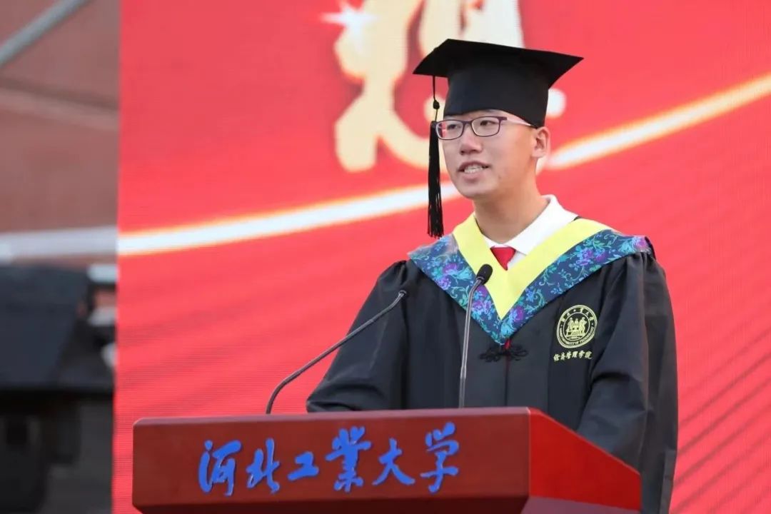 在校生代表、校学生会主席郝普祝大家毕业快乐!“工学并举”的百廿薪火会持续温暖大家前行的路,希望学长学姐在中国式现代化的新征程上跑出新一代河工人的好成绩。