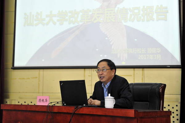 4月7日上午,汕头大学执行校长顾佩华教授应邀来beat365官网做了关于汕头大学改革发展情况的专题报告。校党委书记李强主持报告会。全体在校领导、中层以上干部,校机关、直属机构科级干部等约200人听取了报告。