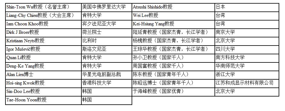 会议邀请肯特大学Quan Li教授,南方科技大学孙小卫教授,南京大学陆延青教授,美国中佛罗里达大学Shin-Tson Wu教授Seminar Speakers作报告