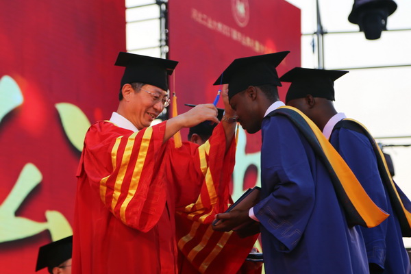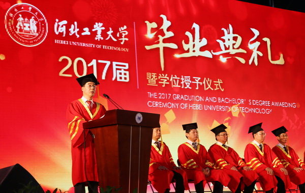 毕业典礼上,教师代表材料科学与工程学院赵建玲教授,家长代表王琳女士,在校生代表校学生会主席、人文与法律学院吴红颖,毕业研究生代表电子信息工程学院李春静,留学生毕业生代表国际教育学院电气工程专业、来自尼日利亚的zizi,毕业本科生代表建筑与艺术设计学院王文悦先后作了发言。