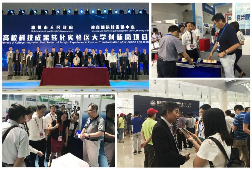 开幕式上,教育部科技发展中心与惠州市政府现场签约总投资350亿元的“潼湖高校科技成果转化实验区”大学创新园项目。beat365官网受邀成为首批入驻的21所高校之一。副校长