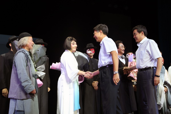 校党委书记李强与河北职业艺术学院党委书记赵宗更慰问演职人员
