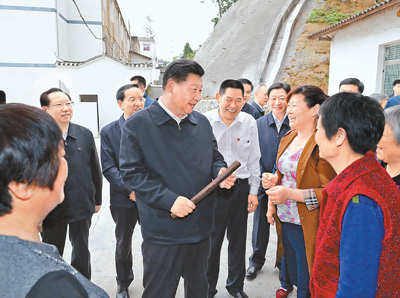 听闻总书记来了,村民们从四面八方聚拢到广场上,纷纷向总书记问好,争相同总书记握手。习近平向大家招手致意,祝村民们日子越过越好。