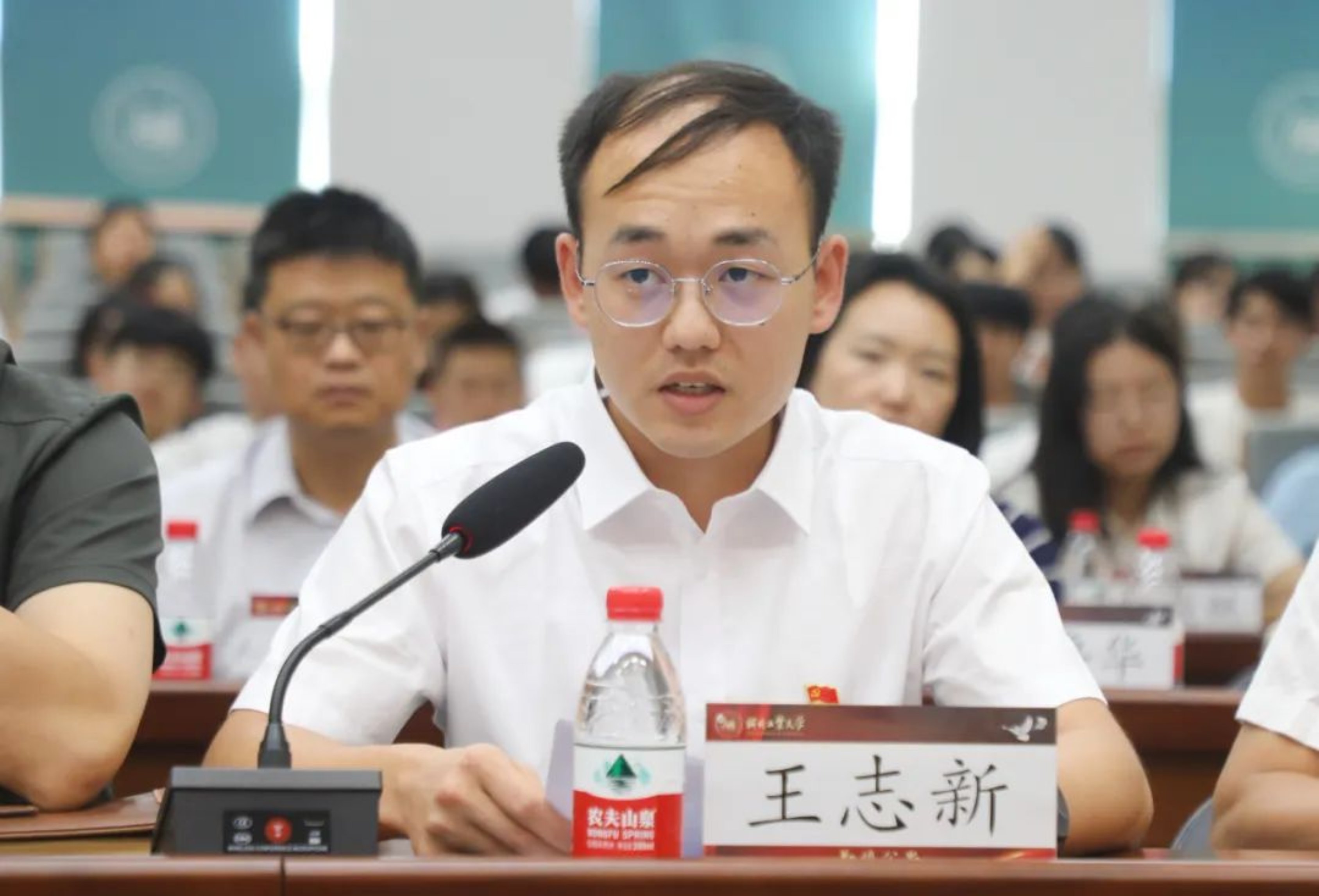 学校有关职能部门负责人,各学院负责人代表,各教工党支部书记、系主任代表,辅导员代表,民主党派代表,师生代表参加了会议。