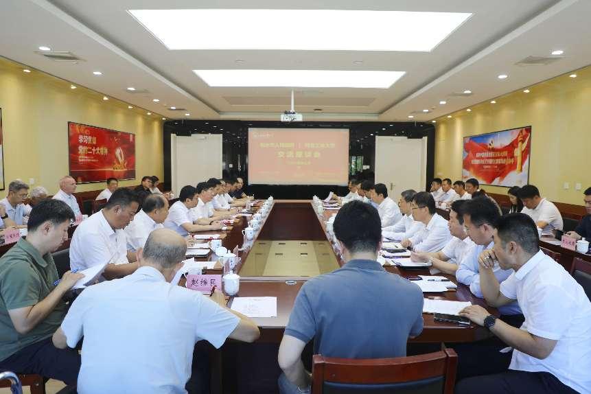 9月18日,衡水市政府市长董晓航一行莅临beat365唯一官网,就深化校地合作、拓展合作领域等事宜进行对接交流。校党委书记韩旭在学校图书馆会议中心与董晓航一行进行了座谈交流。校党委常委、副校长李子彪主持座谈会。