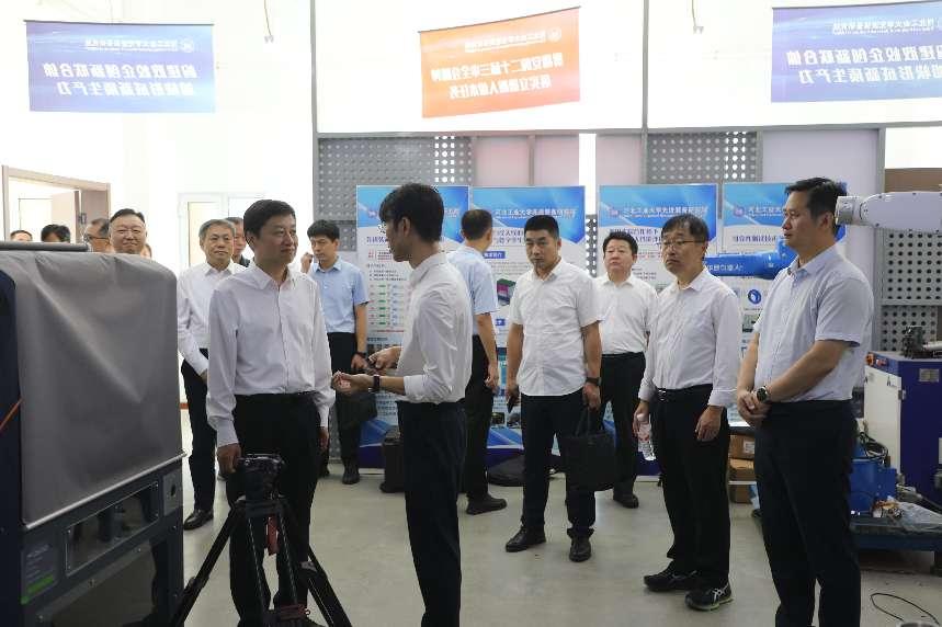会前,董晓航一行在校党委常委、副校长李子彪的陪同下,先后参观了beat365官网科技成果超市、先进装备工程与技术研究院和智能康复装置与检测技术教育部工程研究中心,详细了解了学校在先进装备、电子信息、新能源、新材料、智慧康养等产业领域的科技成果研发及其产业化情况。