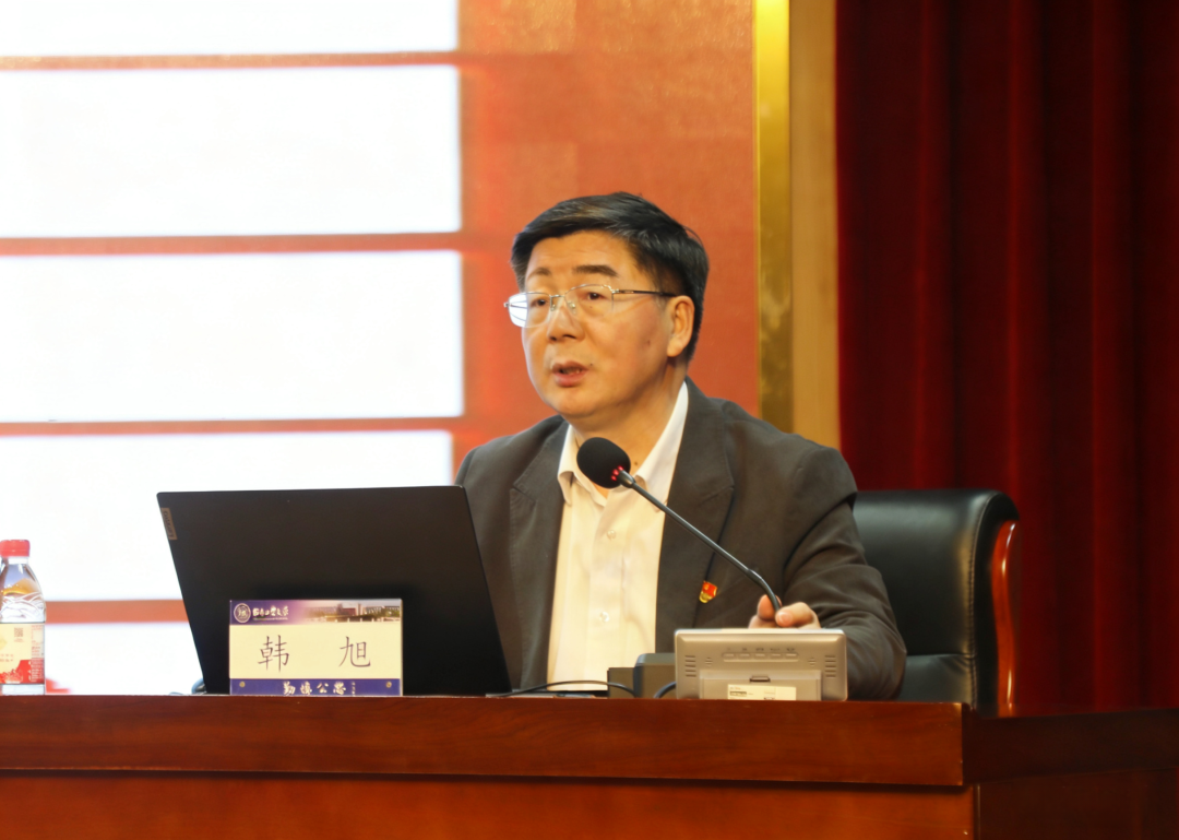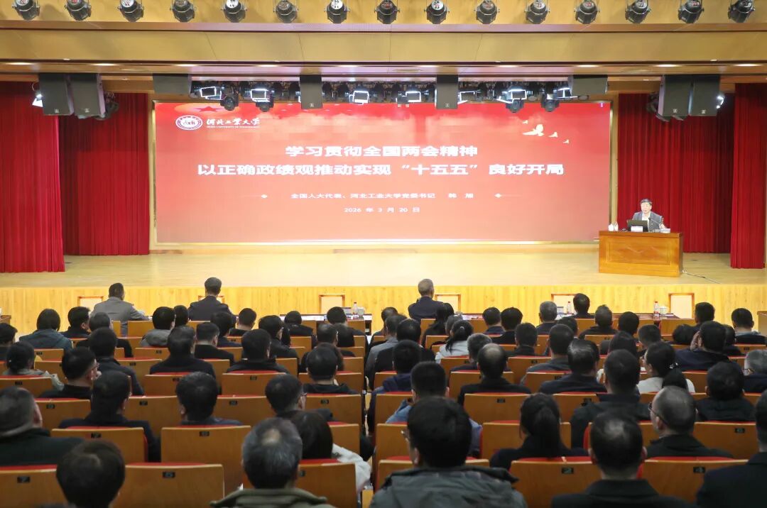 韩旭以《学习贯彻全国两会精神 以正确政绩观推动实现“十五五”良好开局》为题,分别从全国两会期间习近平总书记参加江苏代表团审议、看望全国政协委员、出席解放军和武警部队代表团全体会议时的重要讲话精神、“十五五”规划纲要、政府工作报告、全国人大常委会工作报告、“两高”工作报告、河北代表团履职情况等方面作了传达,并分享了建言献策、接受媒体采访等履职情况的感受与体会。他表示,作为全国人大代表特别是高校领域的代表,深感使命光荣、责任重大。他要求全校师生要立足本职,深入贯彻落实习近平总书记重要讲话和全国两会精神,为服务学校事业高质量发展、推进强国建设贡献力量。