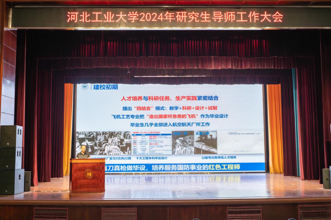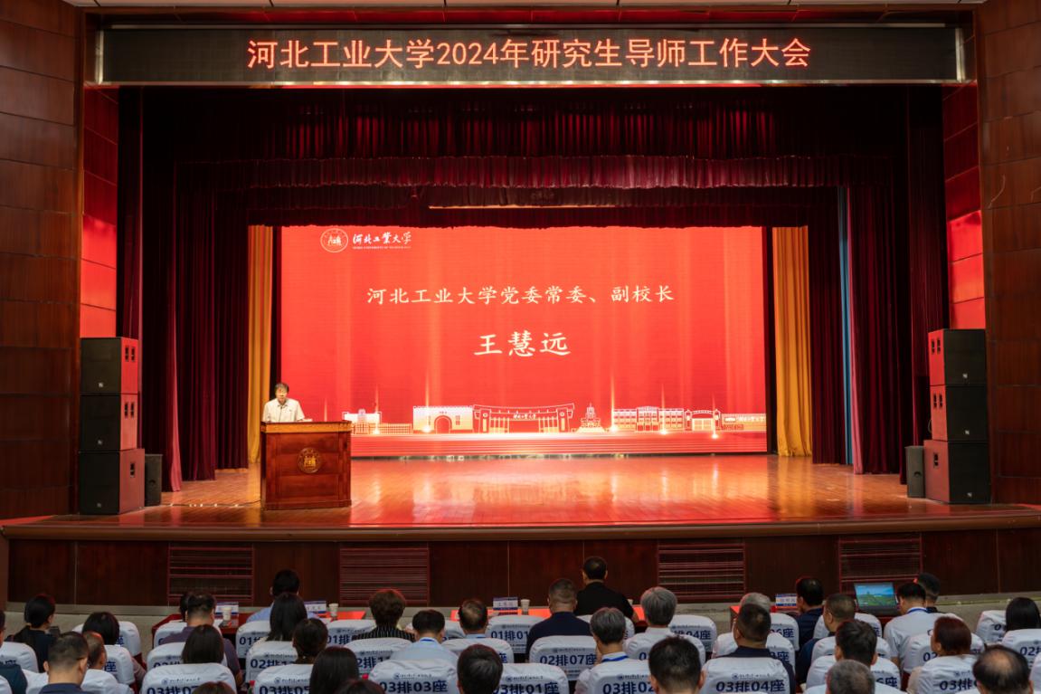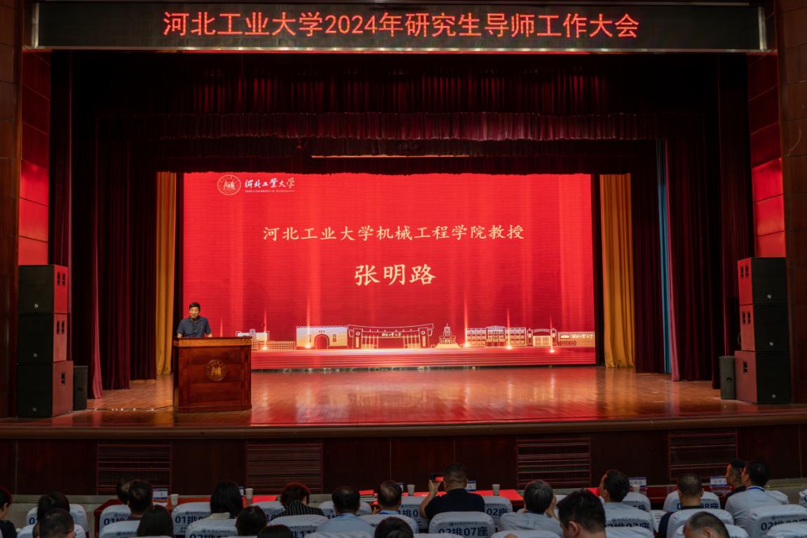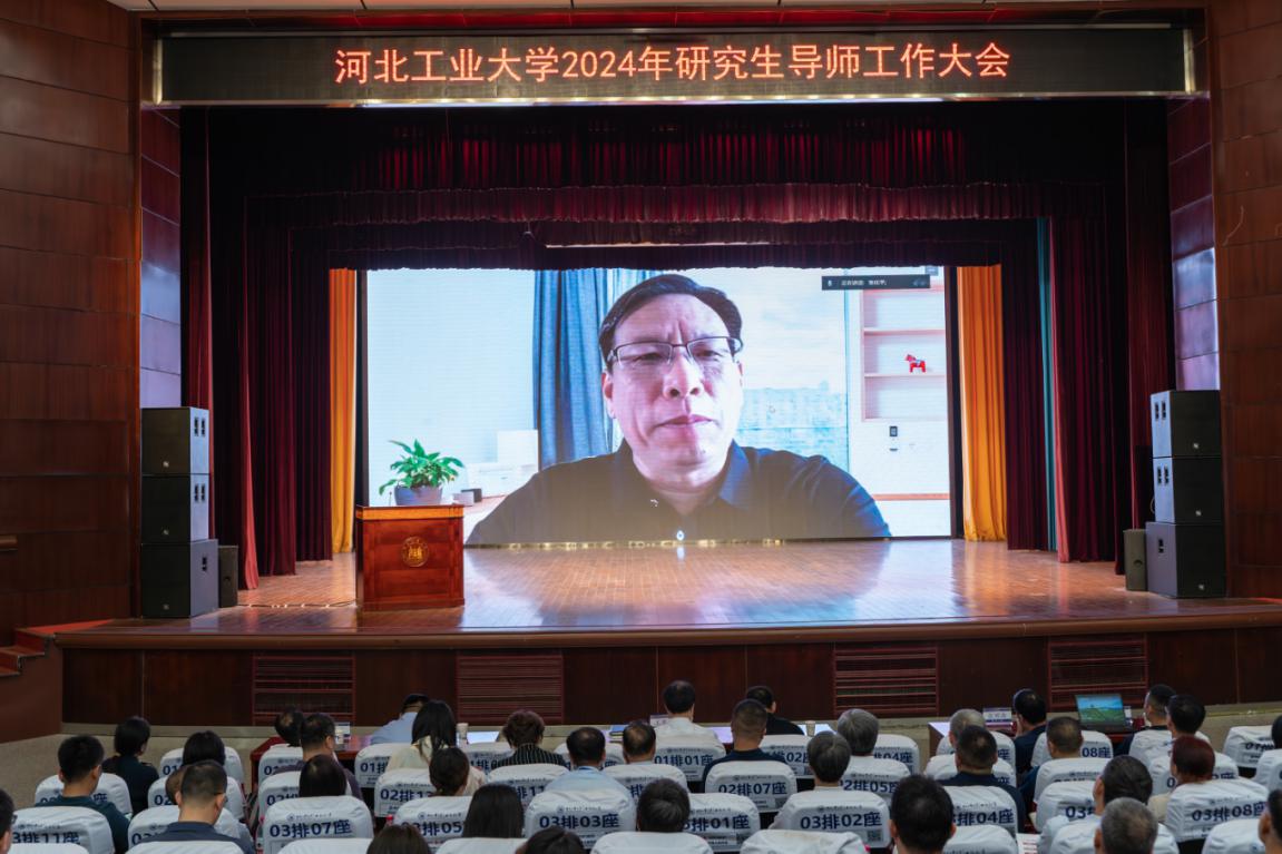 王慧远从三个方面介绍了学校研究生教育工作情况:一是兴工报国,矢志教育强国建设。他围绕习近平总书记关于教育强国的重要论述,对学校秉承“兴工报国”办学传统推进“双一流”建设的新成效进行简要介绍。二是工学并举,助力美丽河北建设。展示了beat365唯一官网聚焦京津冀协同发展、雄安新区建设,服务高质量发展,优化学位点布局,不断提高重点领域急需学科人才培养能力的新方案。三是人才强校,提质导师队伍建设。总结了学校实施人才引育政策以来,在科学研究、学位点布局、导师队伍建设等方面的新局面;同时分析了目前研究生教育存在的一些问题,为今后发展指明了方向。他希望,各研究生导师要弘扬教育家精神,争做新时代教书育人大先生。