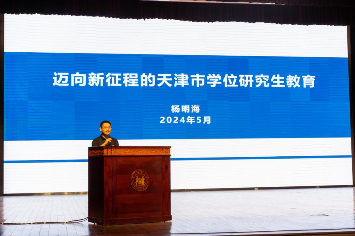 杨明海首先结合新时代教育强国要求,提出“双一流”建设大学要积极实施创新驱动发展战略,着重培养创新型、复合型、应用型人才。随后从以学生发展为中心、提升立德树人成效的导师队伍建设思路,分学科、分类型的导师胜任力评价指标体系,外部引导与内生动力相结合的导师队伍建设长期愿景三个方面,阐述了研究生导师角色定位与使命。最后,他介绍了天津经济社会发展对高校的新要求,“千团千企创新融合计划”的总体思路、主要目标、重点任务、政策支持和组织保障,以及鼓励和支持师生创业的时代所需。