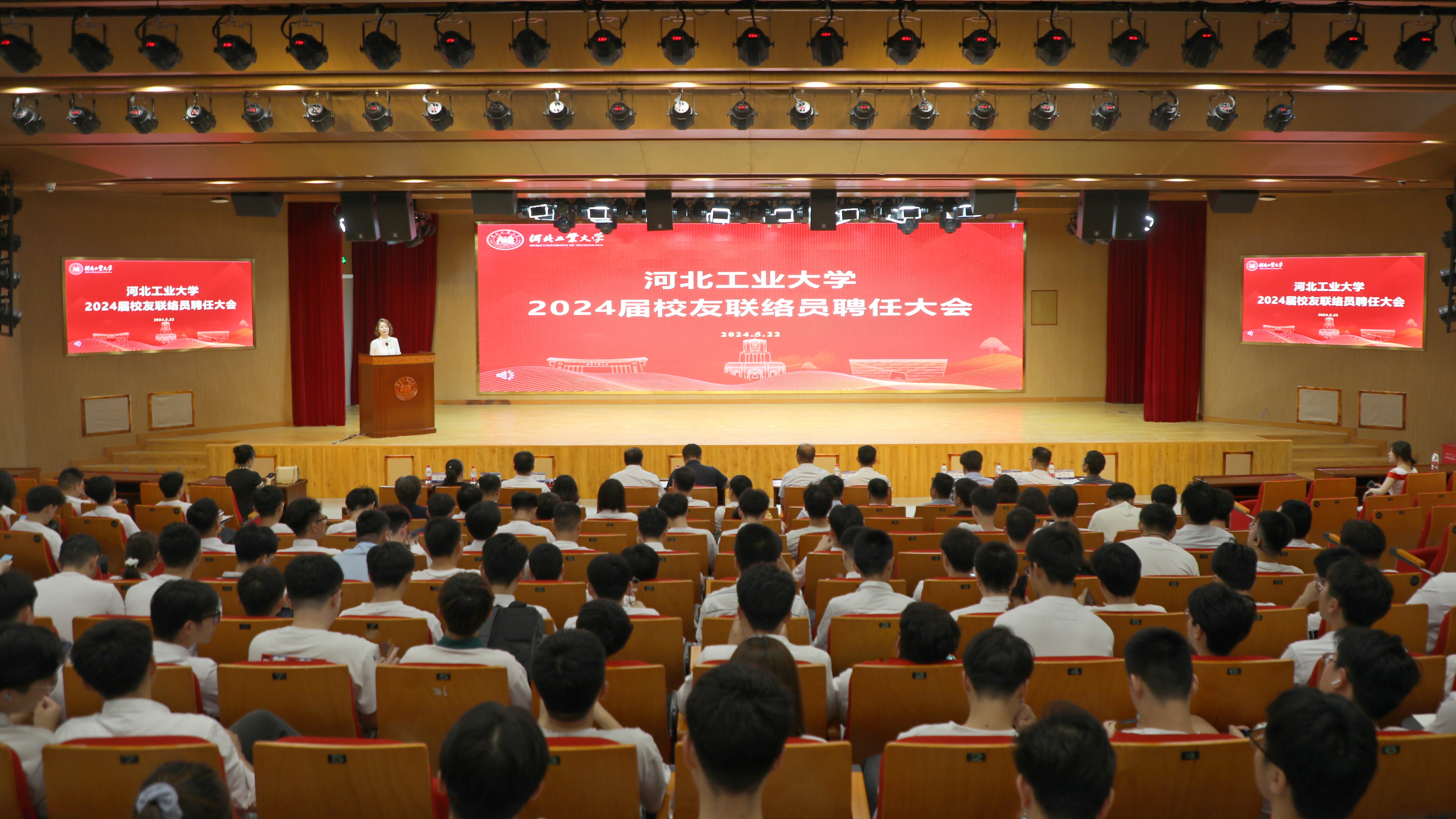 5月22日上午,正值初夏,在悠扬的校歌中,beat365唯一官网2024届校友联络员聘任仪式在图书馆报告厅隆重举行。beat365唯一官网校友会常务副会长戎贤,天津校友会副会长、天津宁河农业发展集团有限公司董事长徐志伟,2017届校友联络员代表、火星先驱(天津)科技有限公司总经理李伟强,2016届校友联络员代表、廊坊市安次区市场监督管理局张璐出席本次大会。