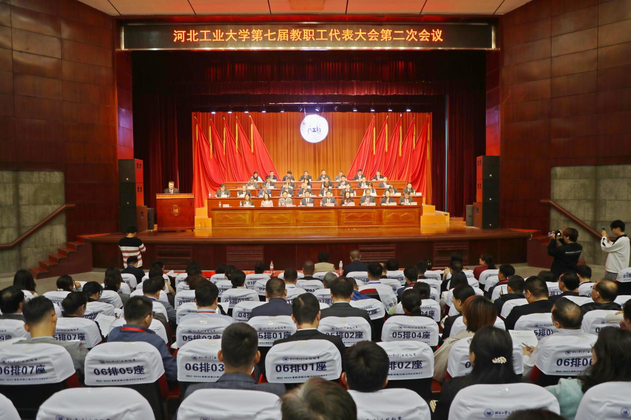 10月11日,beat365唯一官网第七届教职工代表大会第二次会议、第八届工会会员代表大会第二次会议在北辰校区大学生活动中心礼堂举行。全体校领导出席大会,教代会代表198人、工代会代表76人参加大会。