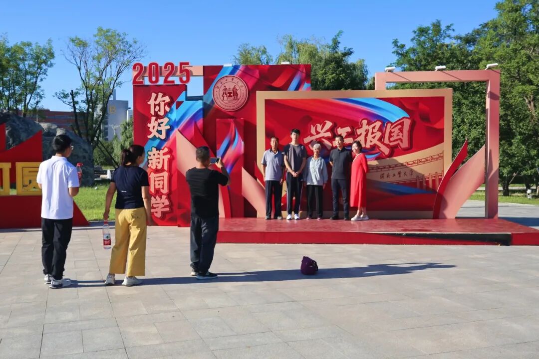 迎新的打卡点也太出片啦!新生们拉着家长、约着刚认识的小伙伴儿,邀约偶遇的校长、书记合影。