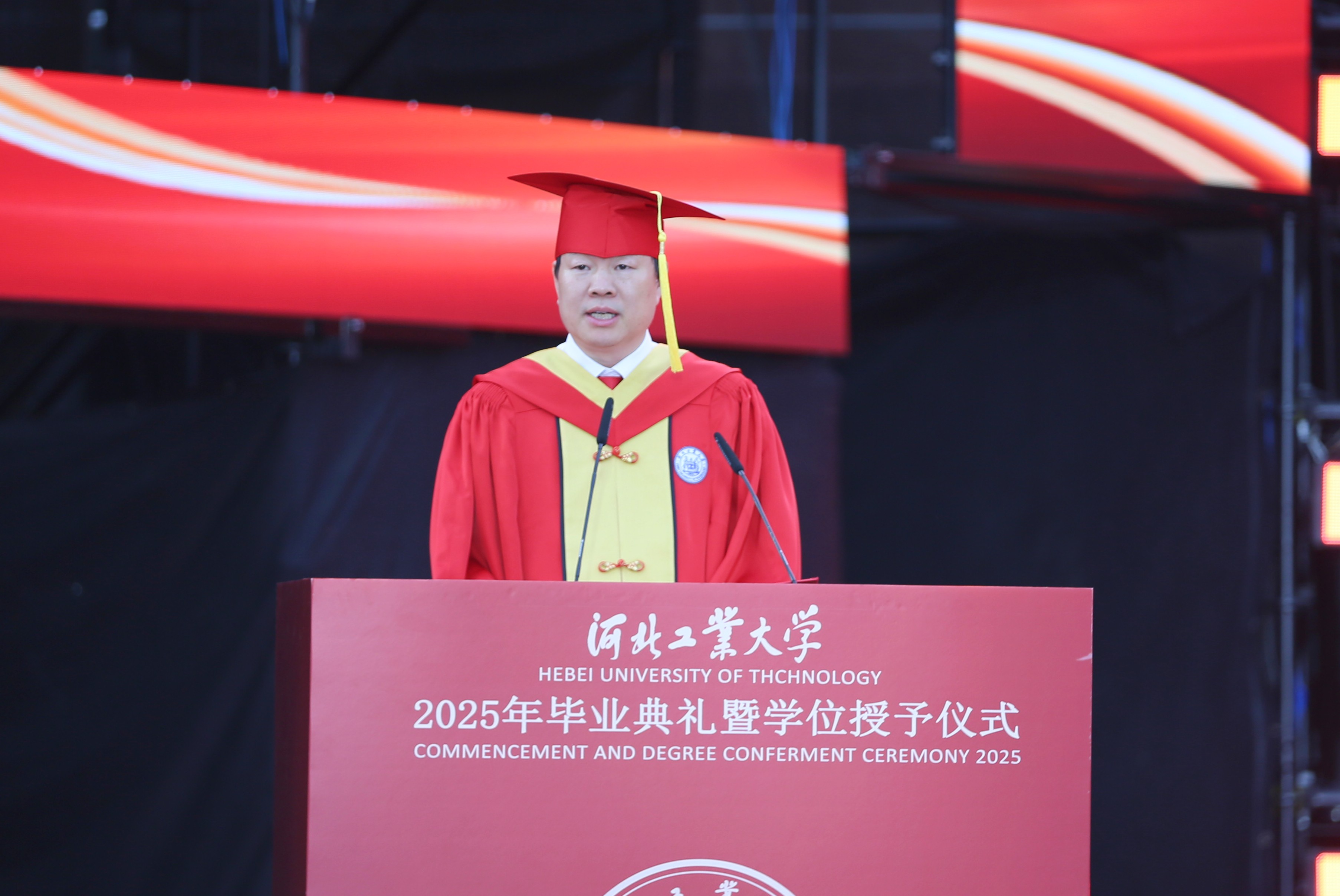 王利民表示,在校数载,同学们在河北工大这片沃土上践行“勤慎公忠”的校训精神,经历“工学并举”的双重锻炼,留下了难忘的青春记忆,也形成了“和而不同”的独特精神。一路走来,大家刻苦学习、快乐实践,不忘初心、力争上游,每一份付出都闪闪发光,每一份平凡都创造不凡,学校取得的发展成绩离不开大家逐梦攀峰的勇气和不舍昼夜的拼搏。