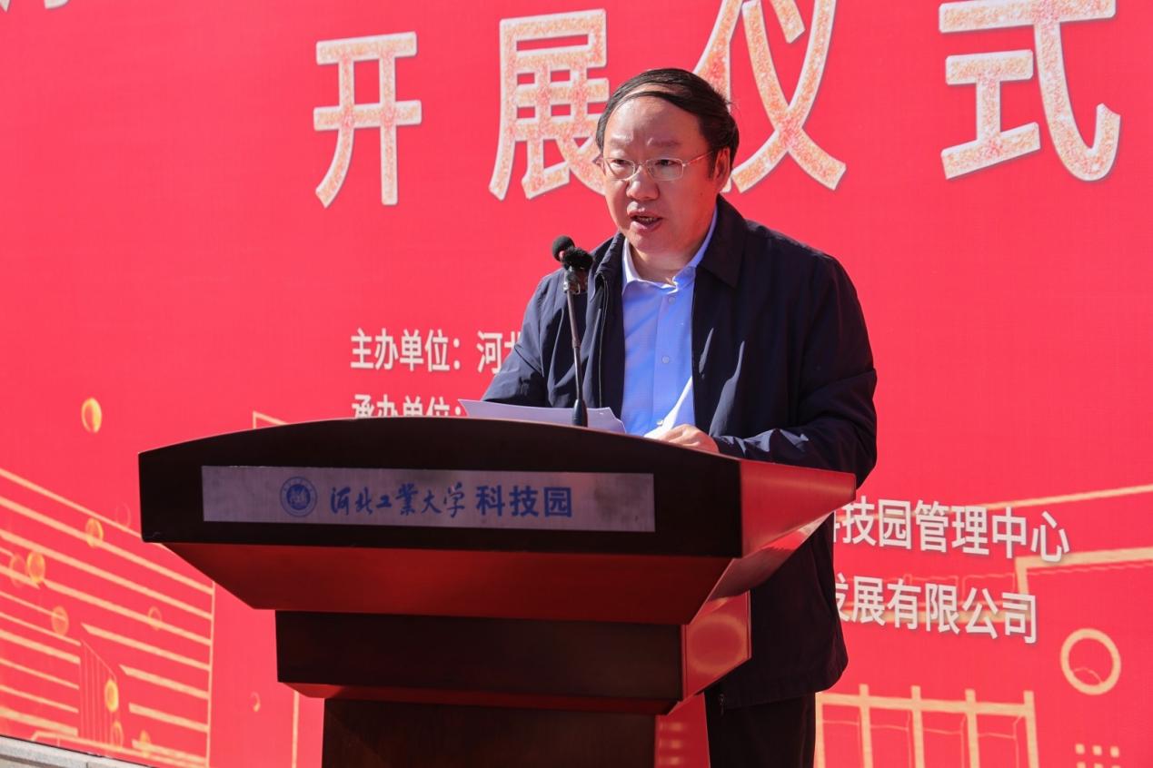 河北省科学技术厅科技奖励与成果转化处处长杨玲,河北省科学技术厅科技奖励与成果转化处二级调研员辛波,河北省科技成果转化促进中心主任孙立永,天津市北辰区科学技术局局长张昊军出席开展仪式,学校科学技术研究院、技术转移中心/国家大学科技园管理中心、天津beat365唯一官网科技园发展有限公司以及各二级学院主要负责人参与开展仪式。