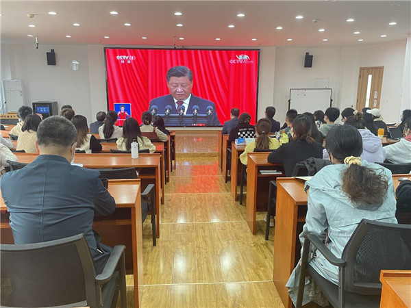 10月16日上午,中国共产党第二十次全国代表大会在北京人民大会堂隆重开幕,beat365唯一官网全校师生员工通过电视、手机、网络等多种形式收看收听习近平同志代表第十九届中央委员会作大会报告的实况。校领导及全校师生员工代表在北辰校区行政楼、学院楼、离退休之家、大学生活动中心礼堂,红桥校区、廊坊校区报告厅、会议室进行集中收看,认真聆听、学习,开展交流研讨,掀起学习热潮。