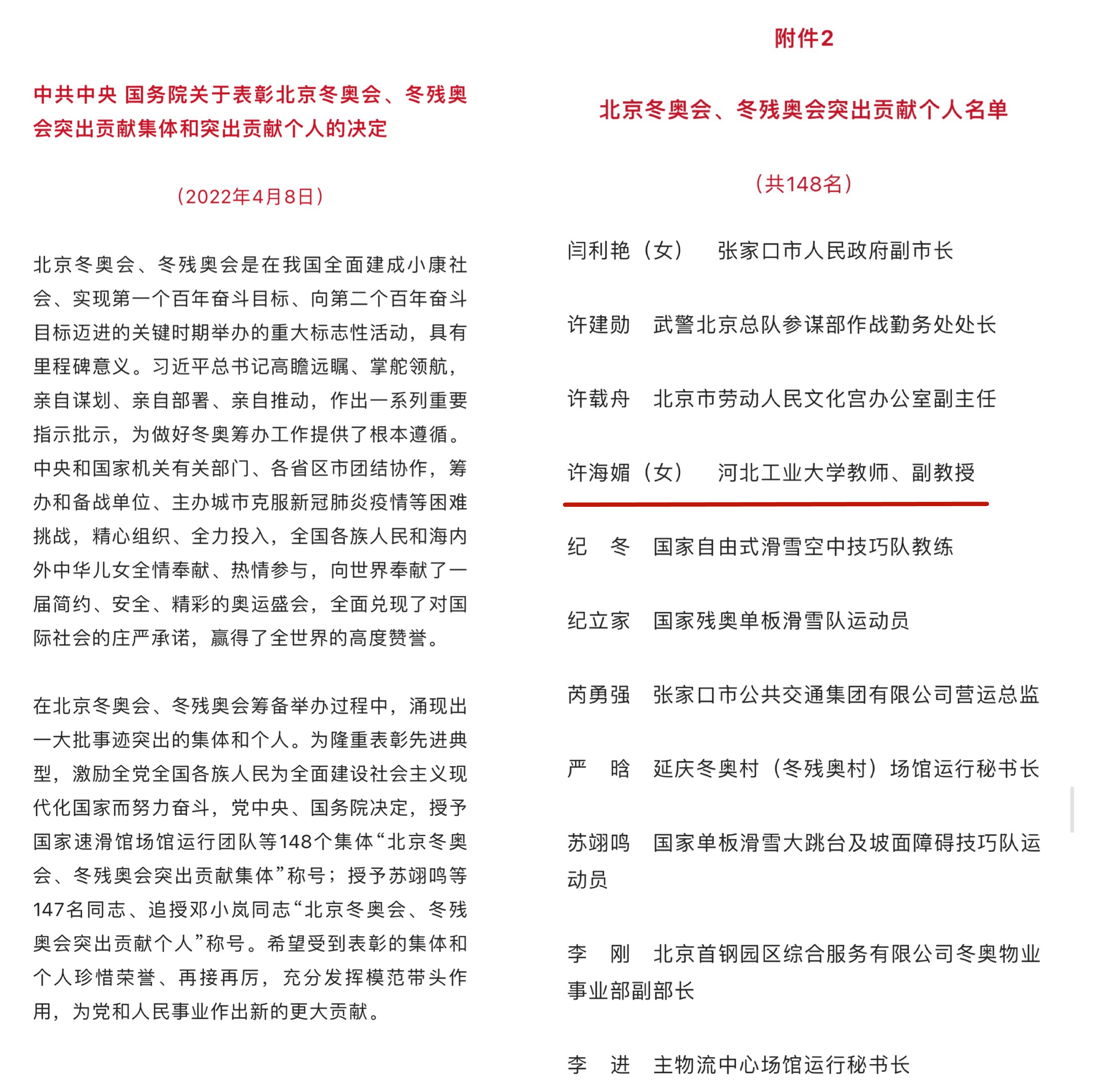 “冬奥会、冬残奥会虽然结束了,但冬奥精神一直都在!我将谨记立德树人的根本任务,把冬奥故事讲给更多青年学生听,鼓舞更多青年学生奋发有为。”许海媚说,”希望我们培养的人才,都成为优秀的社会主义建设者和接班人!“