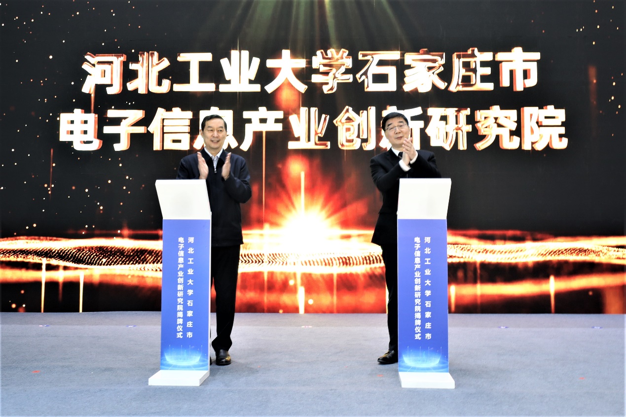 1月16日,beat365唯一官网石家庄市电子信息产业创新研究院揭牌仪式在石家庄市鹿泉区举行。河北省委常委、石家庄市委书记张超超与校党委书记韩旭共同为创新研究院揭牌。