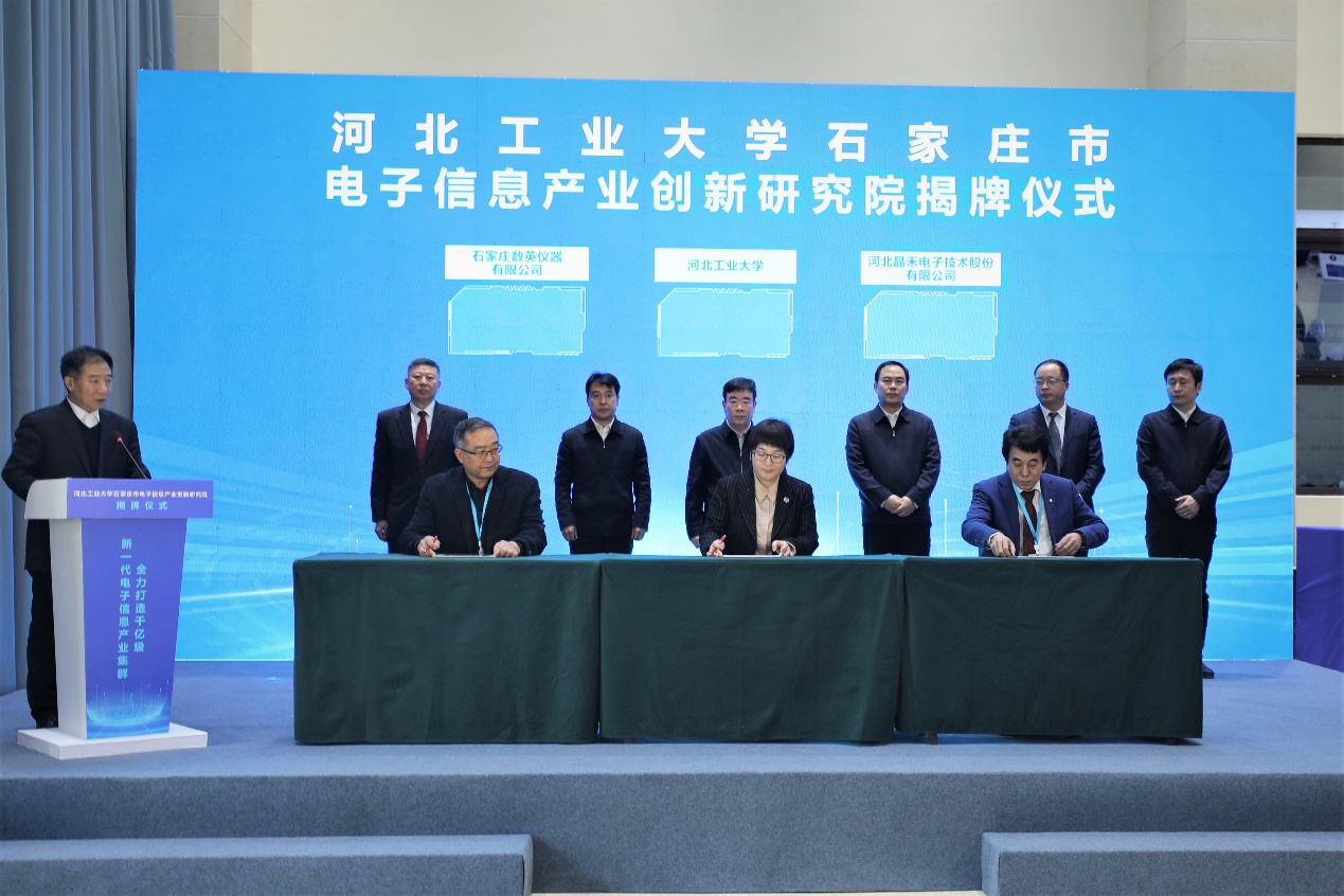 省发展和改革委副主任、省能源局局长姚运涛,省科技厅副厅长高建锋,省工信厅副厅长王建峰,省科协副主席刘伯颖,市委常委、组织部部长罗利,市委常委、秘书长李瑞峰以及省直、市直方面的有关同志,中国电科网络通信研究院党委书记徐小刚,中国电科产业基础研究院常务副院长崔玉兴,中国电科网络通信研究院副院长李立峰,中国电科产业基础研究院副院长张力江以及有关部门负责同志,学校相关职能部门和学院负责同志以及河北晶禾电子技术股份有限公司、石家庄数英仪器有限公司等13家企业代表出席揭牌仪式。