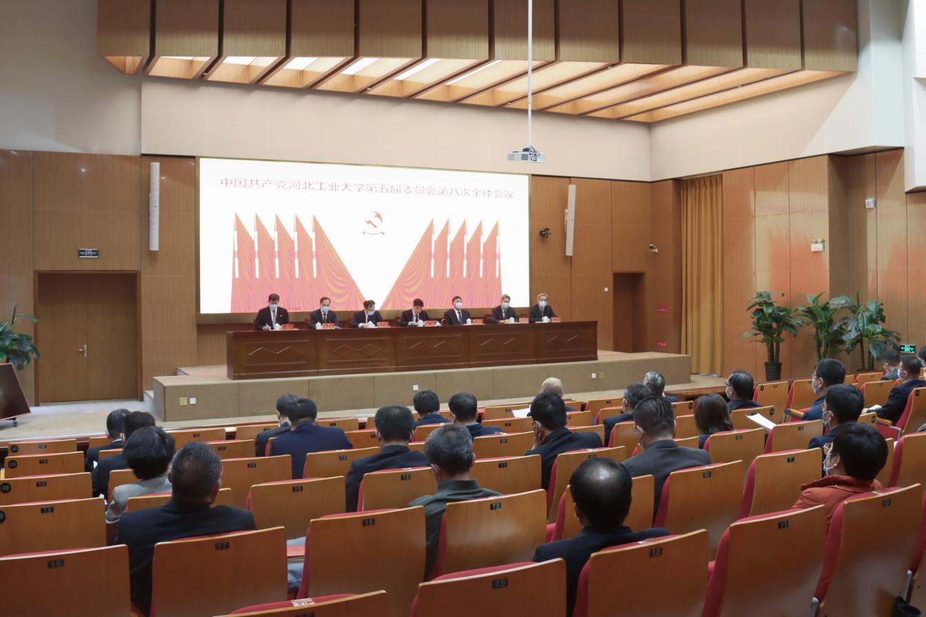 11月3日,中国共产党beat365唯一官网第五届委员会第八次全体会议在机材楼报告厅召开。会议学习传达了党的二十大精神和河北省委十届三次全会精神,听取了校党委书记韩旭代表学校党委常委会所作的工作报告,审议通过了《中国共产党beat365唯一官网第五届委员会第八次全体会议决议》。全会由韩旭主持。