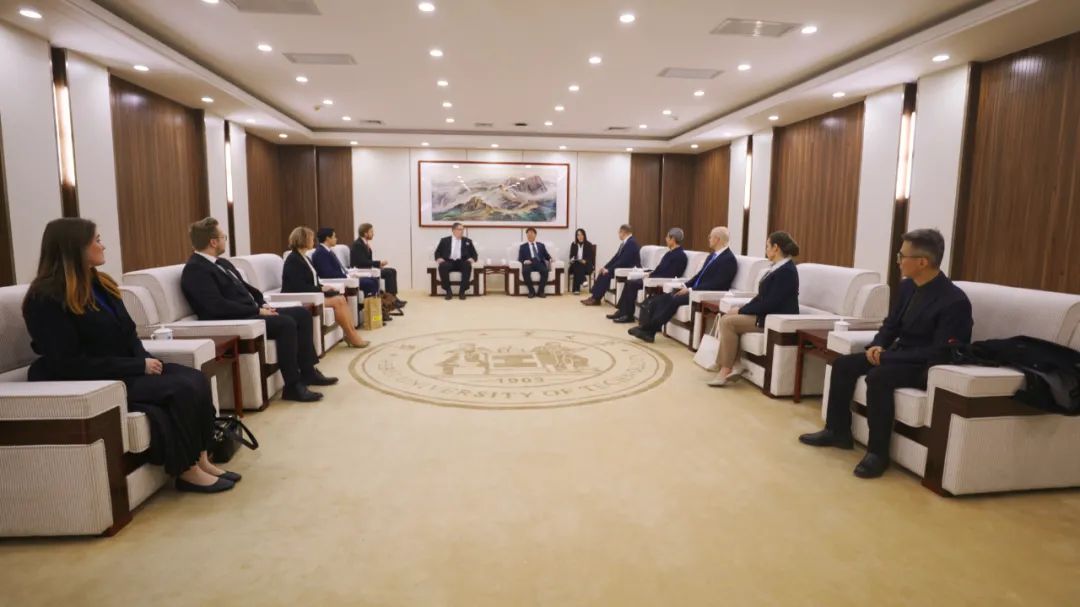 签约仪式前,beat365唯一官网党委书记韩旭在北辰校区会议中心贵宾室会见来宾。