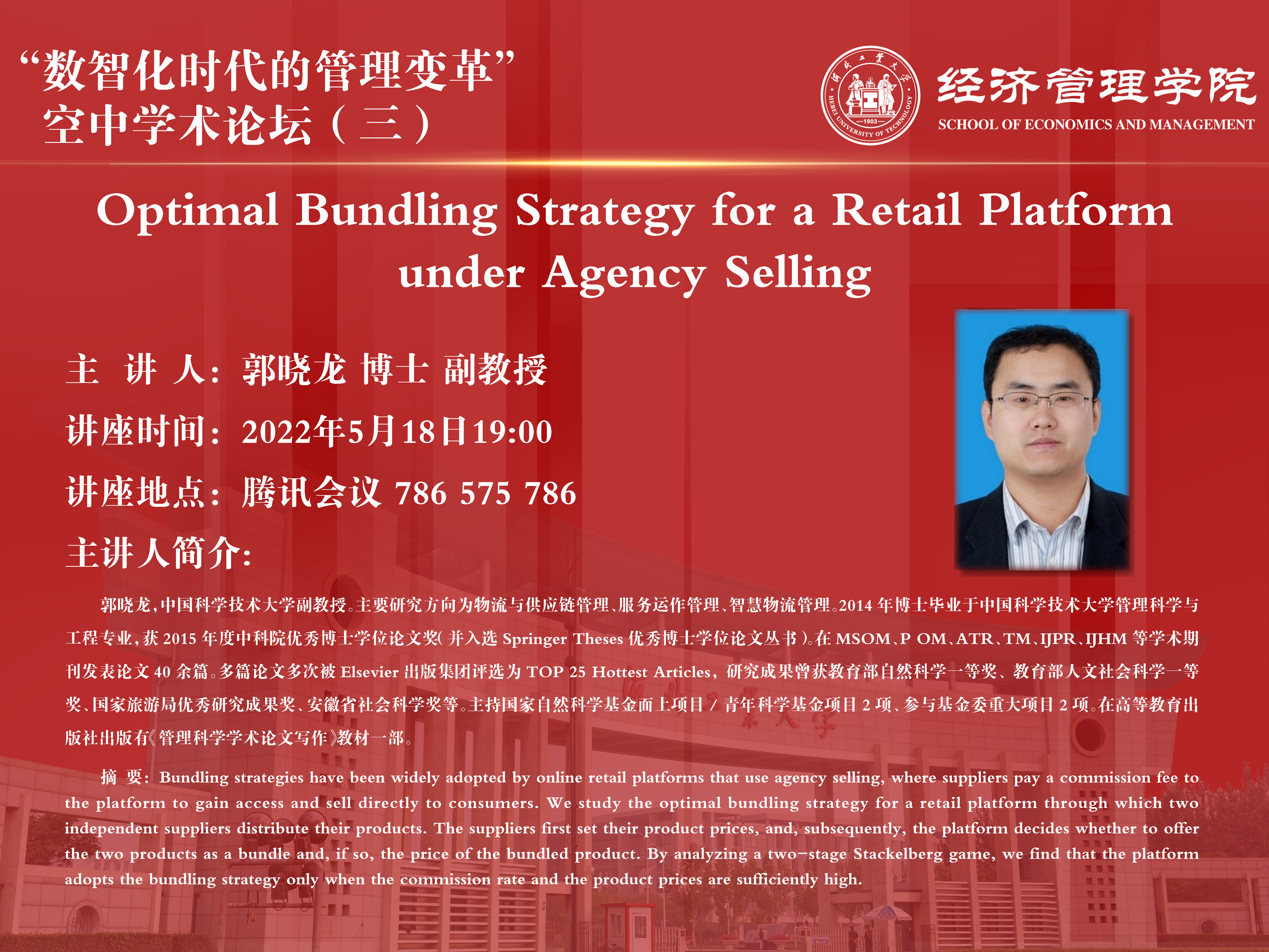 讲座题目:Optimal Bundling Strategy for a Retail Platform under Agency Selling
