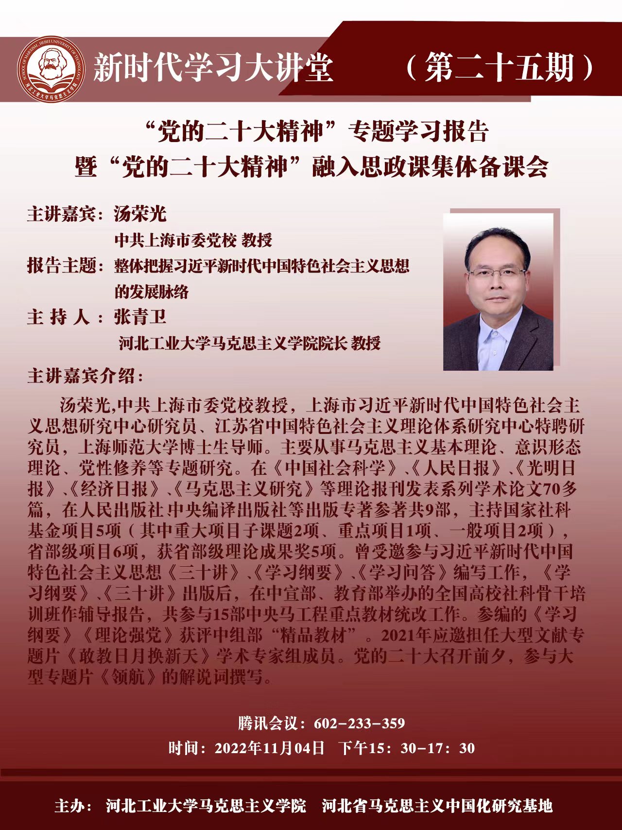 讲座题目:“党的二十大精神”专题学习报告暨“党的二十大精神”融入思政课集体备课会——整体把握习近平新时代中国特色社会主义思想的发展脉络