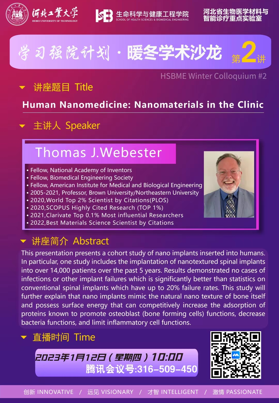 讲座题目:Human Nanomedicine: Nanomaterials in the Clinic