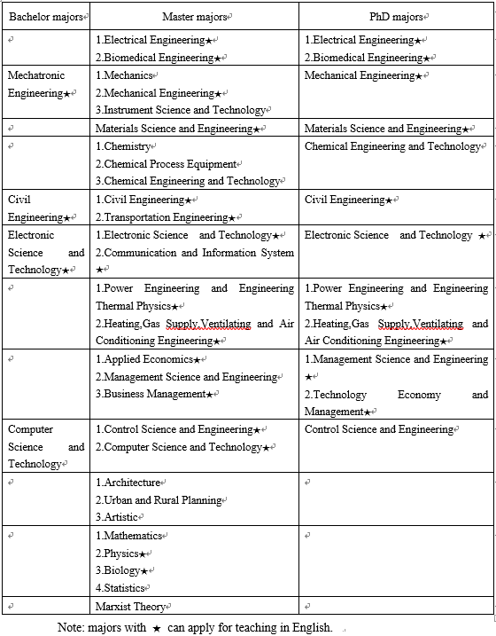 4.Majors taught in English have no requirement for Chinese level of the applicants, but the applicants from a non-English-speaking country should have TOEFL results not lower than 85 or IELTS results not lower than 6.0.